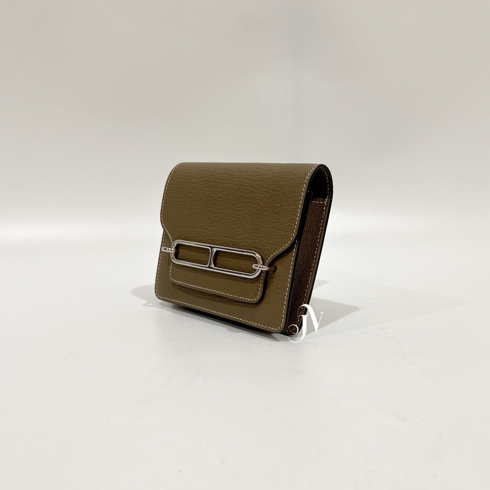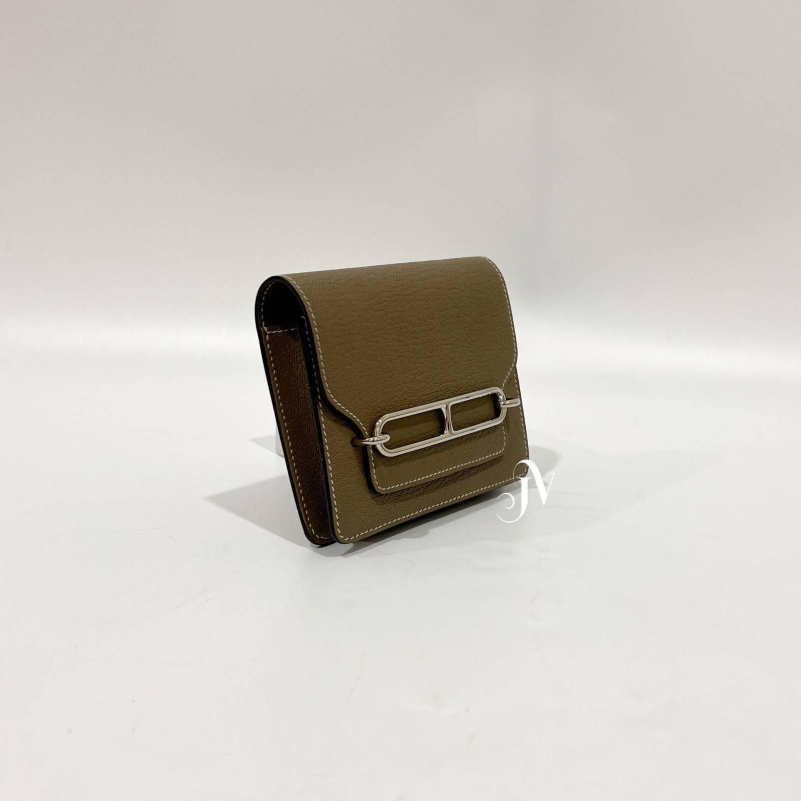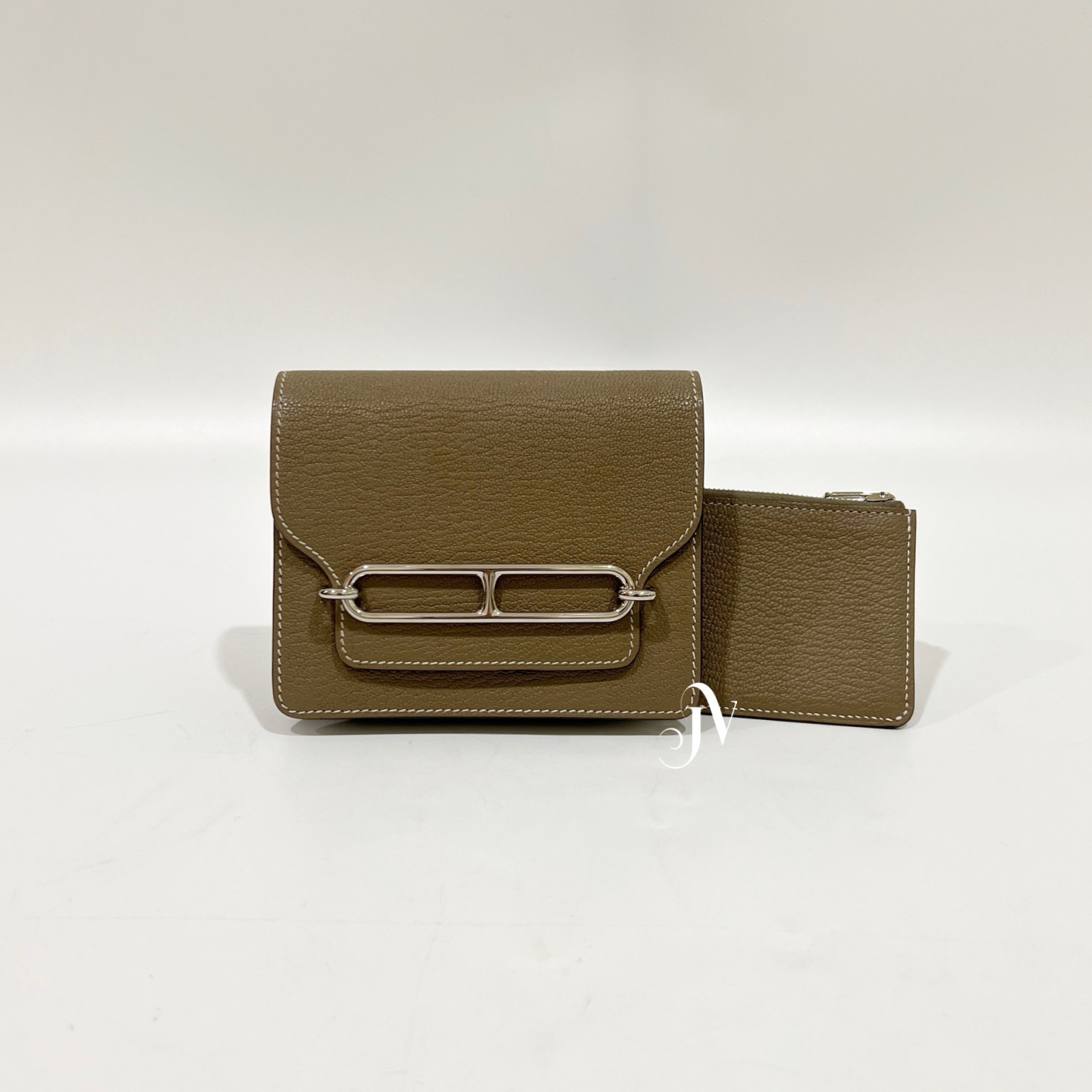 HERMES 18大象灰山羊皮銀釦豬鼻Roulis Slim卡包