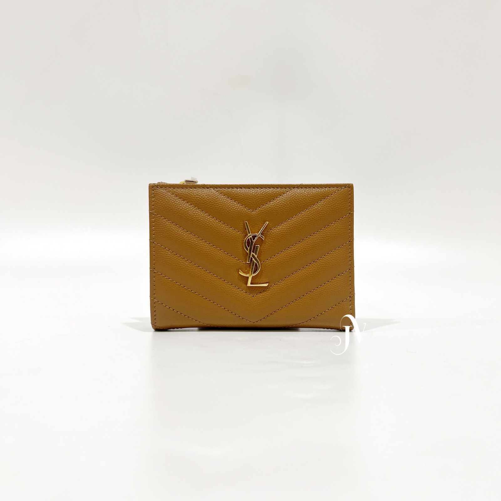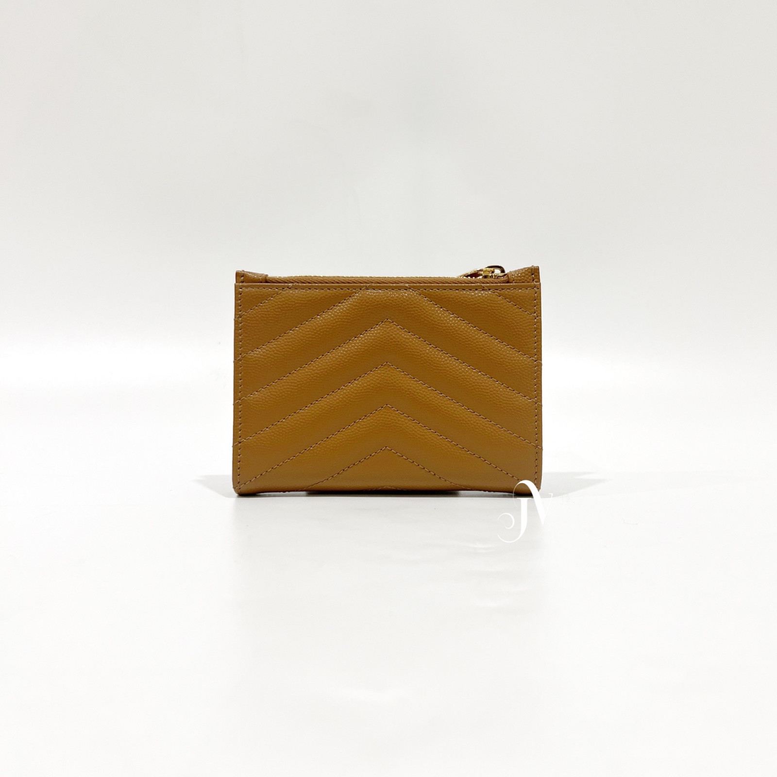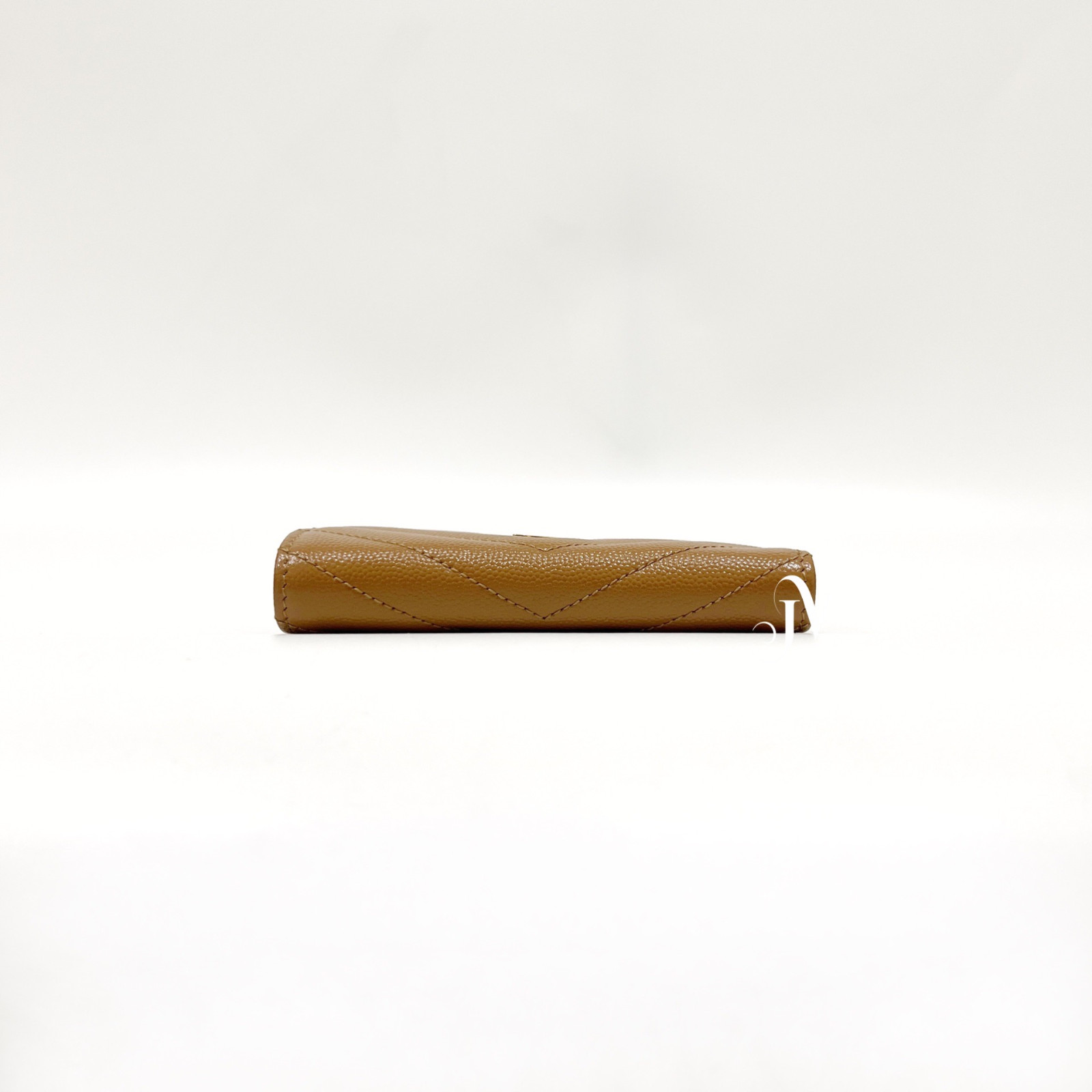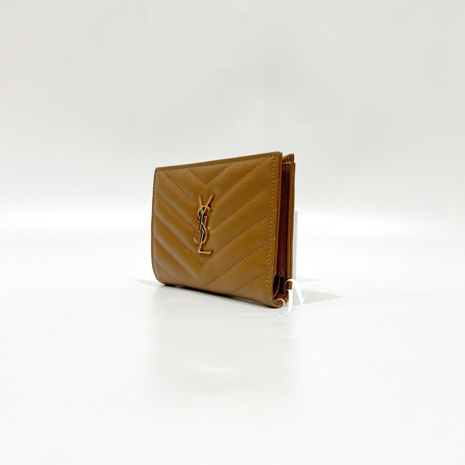 YSL焦糖棕魚子醬皮金釦對開短夾
